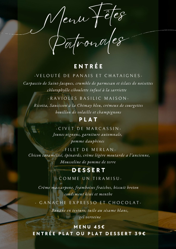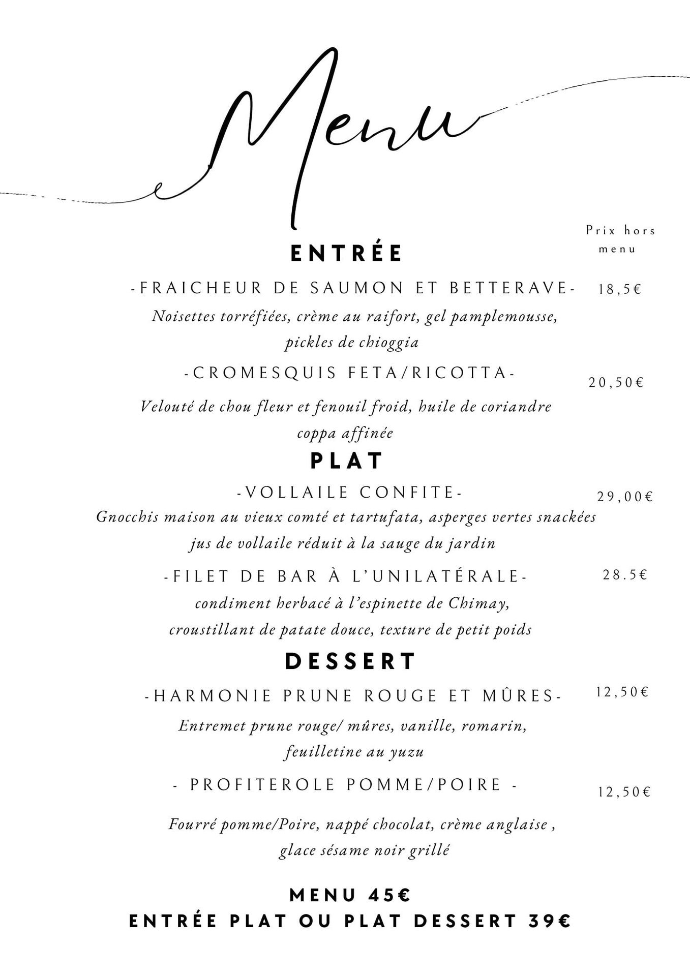 Chaque mois, notre chef compose un menu unique, inspiré des produits de saison et des trésors de nos producteurs locaux.